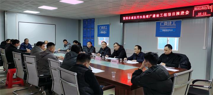 在項目現場,黃俊一行仔細察看了項目復工復產情況,并召開賀州市城東污水處理廠建設工程項目推進會。會上,黃俊認真聽取施工單位關于項目復工復產工作情況及項目推進過程中遇到的困難和問題的匯報,并提出指導意見。