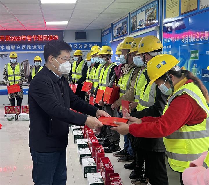 慰問過程中,蔣曉軍為在崗農民工送來新春祝福,送上慰問金、慰問品、慰問信,并與他們親切交談,詳細了解他們的生活、工作等情況,認真傾聽他們的想法和建議,詢問家中是否存在困難,感謝他們為賀州項目建設付出辛勤勞動和汗水,鼓勵他們愛崗敬業、踏實工作,為建設美麗新賀州做出新的貢獻。