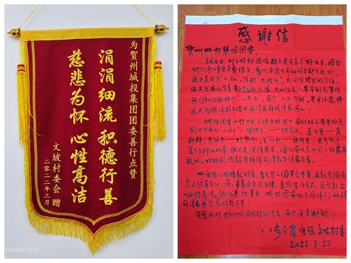 村委致謝贈錦旗 點贊城投集團團委志愿服務2022-05-24